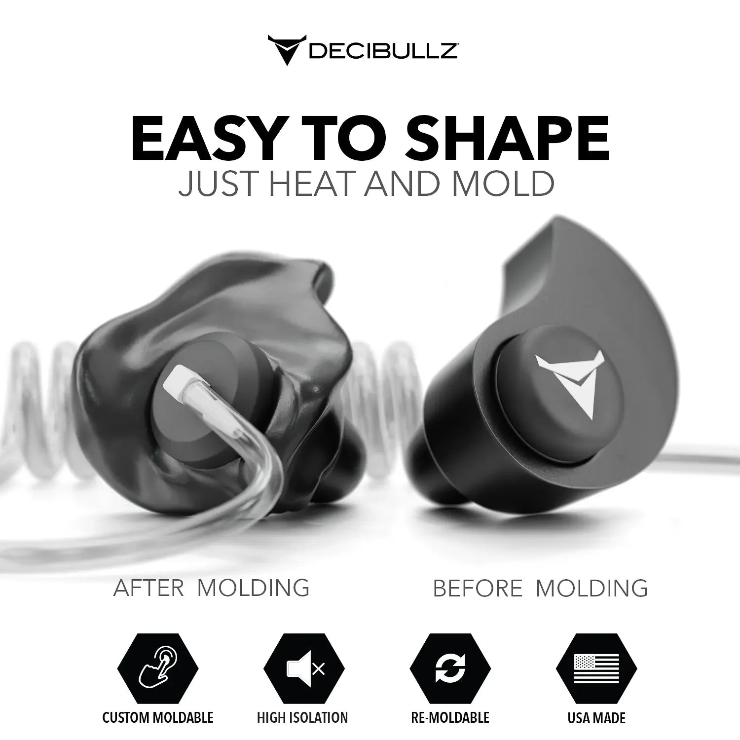 A highly cost-effective, custom radio-communication solution for police officers, firefighters, EMS, security, and anyone who needs quick, clear receipt of audio messages. Decibullz earpieces are made in the USA, and all Decibullz products are designed and assembled in Colorado.