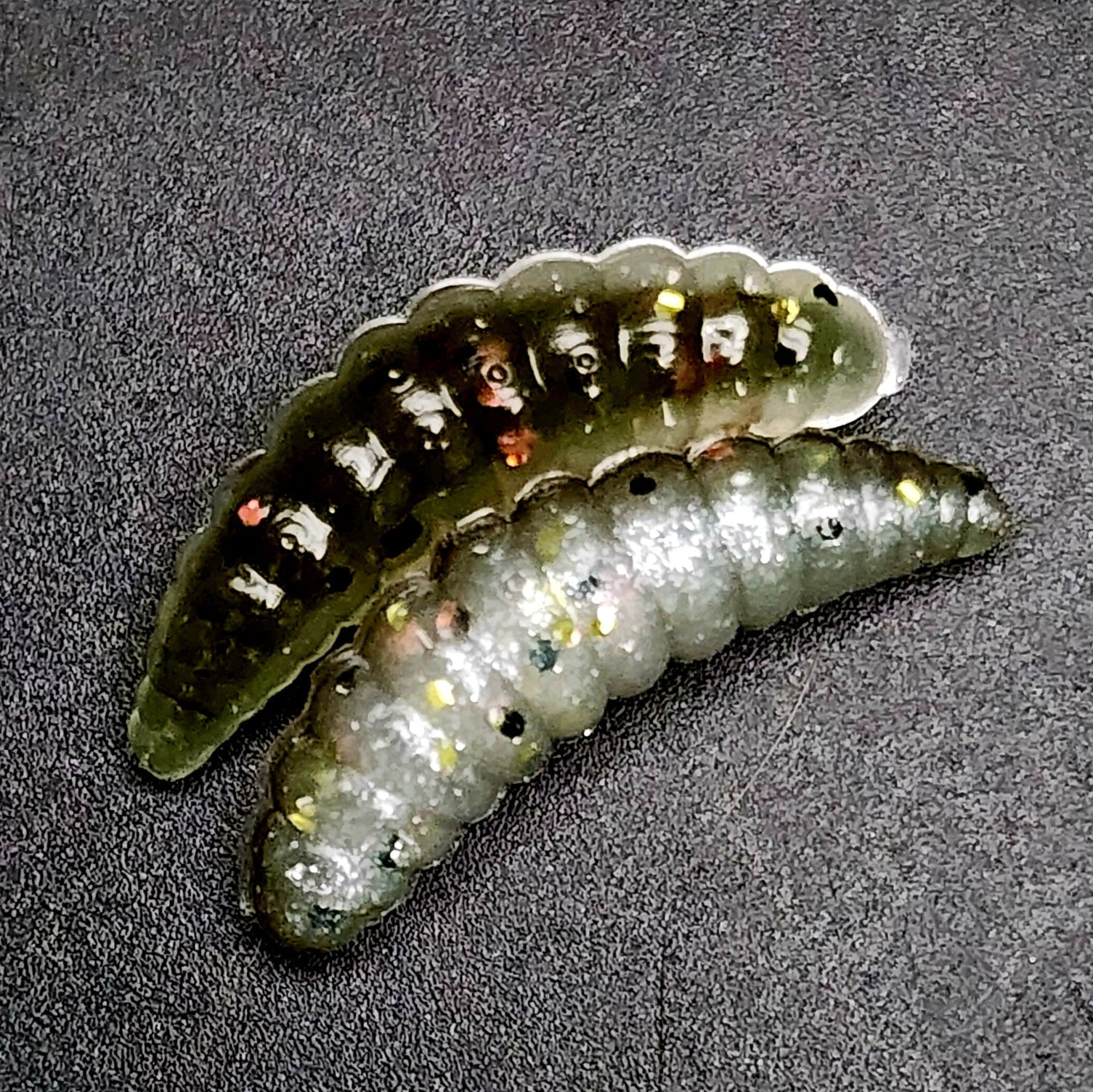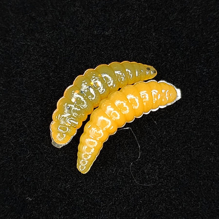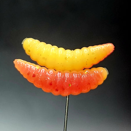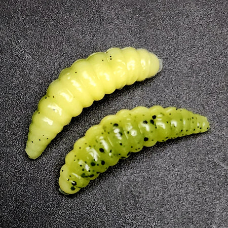 They do say down in the holler, that if you ever stumble upon a fella named Tater by the creek bank, you best hold on to your britches. Now, Tater ain't no fisherman, nor is he kin to none. Tater's a grub, a wee inch-long critter with a head harder than a hickory nut. But don't let his size fool ya. Legend has it, wherever Tater shows his little grub face, a trophy trout is sure to be lurking nearby. Some folks say Tater's got a secret trout call, a wiggle of his fuzzy back that sends them lunkers into a frenzy. Others reckon the trout see Tater as a sign of good eatin', a smorgasbord of grubby goodness. Whatever the reason, if you see Tater, that's your sign – cast your line and hold on tight!