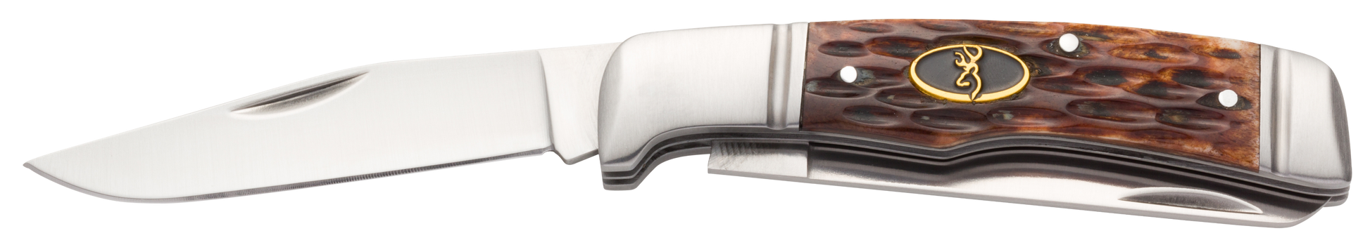 Ideal for hunting, camping, and fishing, the design delivers dependable performance for cutting rope, preparing camp meals, and general field tasks. The browning joint venture is a traditional slip joint folding knife with 8cr13mov stainless steel blade, nail nick opening, a brown jigged bone handle scales with ss bolster and a buckmark medallion.