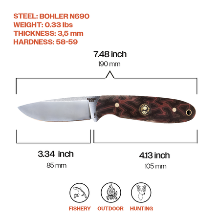 Kam Knife - B20 - N690 Steel - Orange G Micarta Handle - Fixed Blade