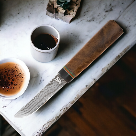 Kam Knife - P10 - Damascus Steel - Maun Wood G Micarta Handle - Fixed Blade Flat