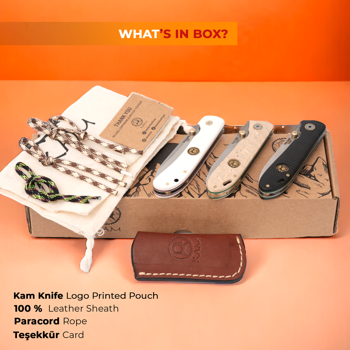 Go on your wild adventure with the Kam Outdoor Knife 3-Piece Set! This set will help you clear your way, build your campsite, and tackle any challenge in the wilderness. You are ready for any task with its durable blade and versatile pocket knife. Perfect for an adventure in harmony with nature!