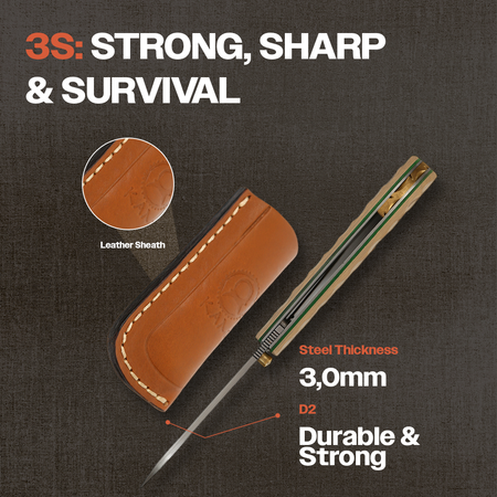 Specifications: Made in Türkiye Explore the wilderness and camp out carrying your favorite pocket knifes. The Kam outdoor knife was created so that there will be no need to carry a heavy knife with a fixed blade when backpacking. The Kam knife is aesthetic and is sought out by enthusiasts thanks to the micarta handle. It is pleasing to look at compared to other EDC knives. Our high quality sharp pocket knife comes with a locking mechanism which hides and holds the blade in place when not in use. The excellent craftsmanship and durable designs allow it for everyday outdoor use such as going on hiking adventures, hunting, fishing and many more outdoor activities. Besides the outdoor activities, the Kam knife boasts versatility that extends to a wide range of daily tasks. Its ergonomic design ensures a comfortable grip, setting it apart from other folding knives. The carefully crafted handle fits seamlessly into your hand, promoting precision and control during use. Whether you're slicing through tree branches packages, ropes, or tackling any outdoor projects, the Kam knife remains a reliable companion. Makes a perfect gift for people who like to do outdoor survival activities. The Kam knife is a practical tool that embody the spirit of self-reliance and adventure. Their compact size belies their impressive capabilities. In the realm of outdoor gear, small pocket knives stand out as timeless and indispensable tools for those who relish the thrill of the great outdoors. |
