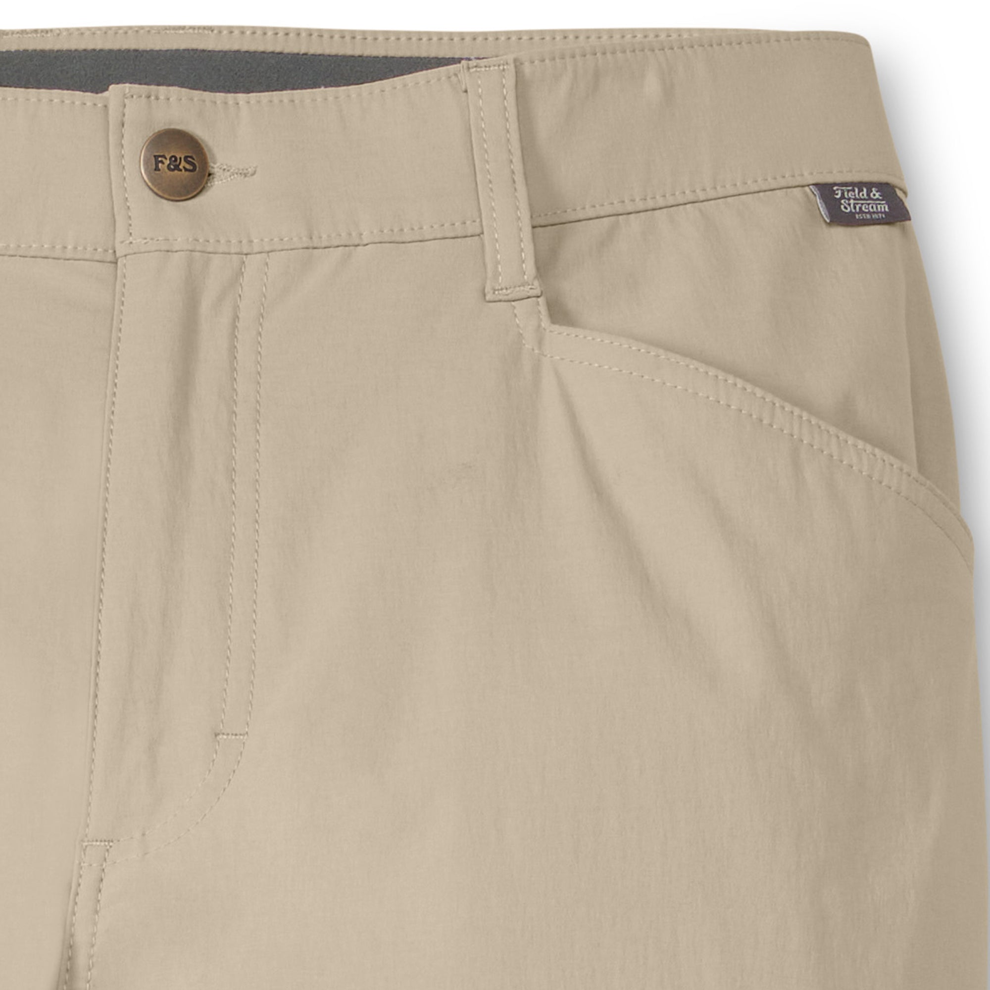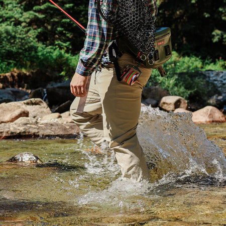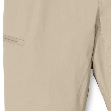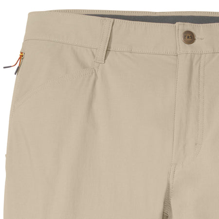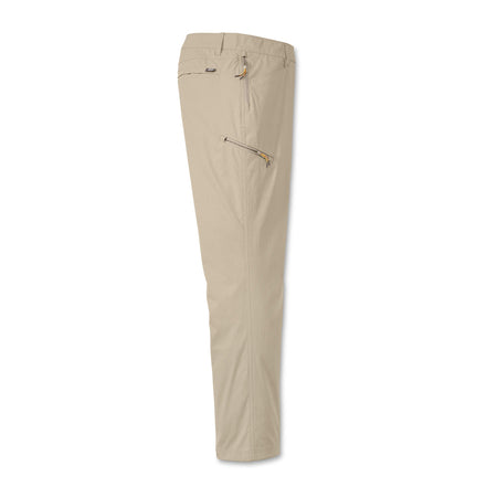 These hard-working performance fishing pants are perfect for the everyday angler but work just as well off the water. Made of nylon for extra durability and reduced shrinkage, Spandex for added stretch and recovery). Lots of features: double-needle stitches, two top front pockets, zippered thigh pocket on wearer’s right side, hidden zipper pocket behind right hip pocket for cell phone (7 inches deep), rear envelope pockets to secure goods and make entry ease, two grommets in pockets for water or sand to leak through, reinforced pocket bottoms – sewn over for longer durability. The elastic waistband and gusset at crotch help these pants move with you.