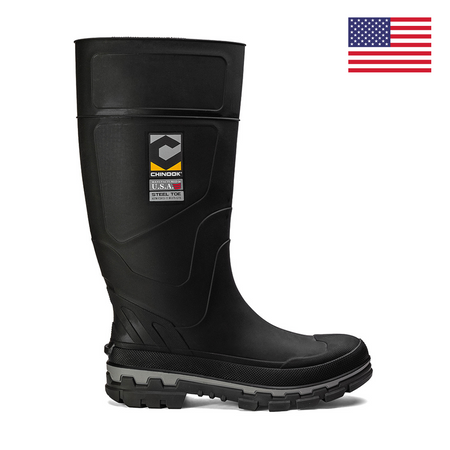Take on the toughest conditions with confidence in the Chinook Kickaxe 15" Steel Toe Waterproof Rubber Boot. Proudly made in the USA, this boot is designed to provide top-tier protection, featuring a robust steel toe for essential safety against impact and compression, making it perfect for industrial work environments. The 15-inch height ensures your legs stay dry in wet, muddy conditions, while the durable waterproof rubber construction offers long-lasting resilience in harsh elements. With its slip-resistant outsole and multi-directional lug pattern, this boot delivers exceptional traction on a variety of surfaces, ensuring stability on the job. Whether you're working outdoors or in heavy-duty settings, the Kickaxe boot provides the durability, protection, and comfort you need to tackle any task.