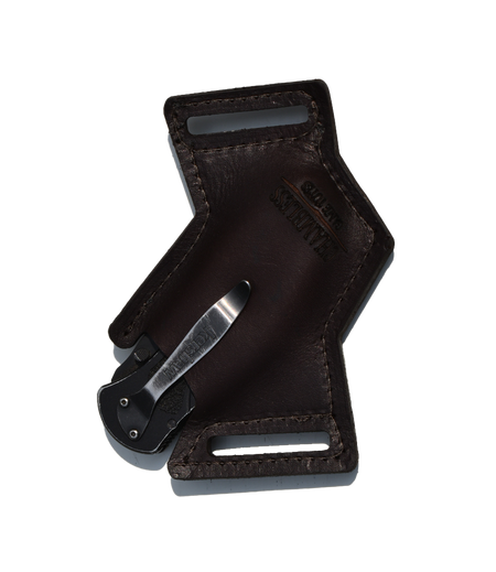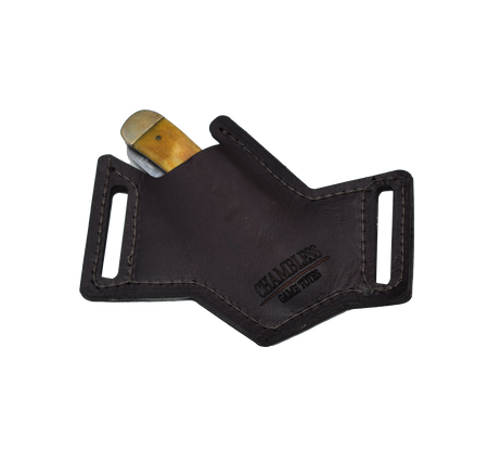 English Bridle Leather Knife Sheath. Carry your favorite CASE Trapper or Kershaw lock back knife. Easy to use just slide leather sheath throw any belt up to1.50 inches. Easy to conceal if placed on back not to get any unwanted attention.