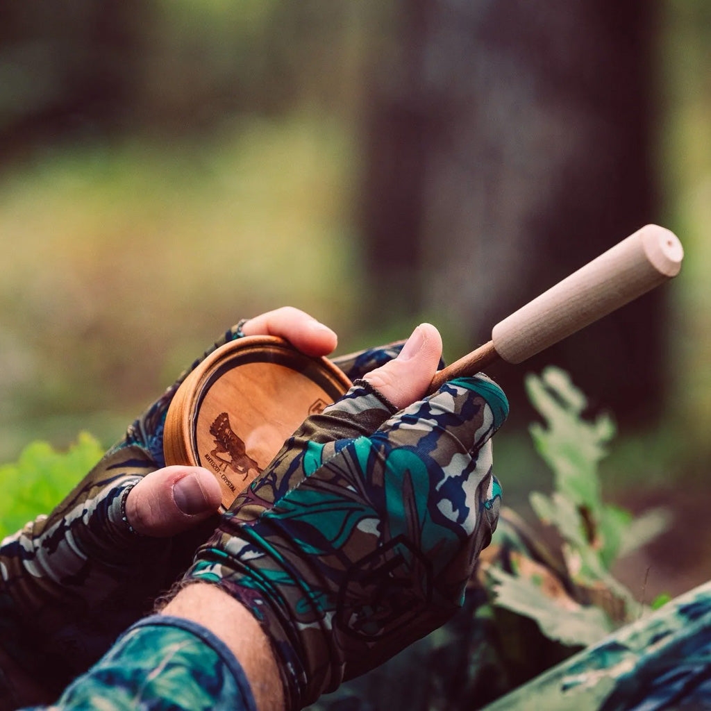 The Knight and Hale HD Crystal Surface Pot Call delivers loud, consistent, and realistic turkey sounds that carry well over long distances and in windy conditions. Built with a crystal surface and cherry pot, it pairs with a hand-matched cherry striker to produce sharp, true-to-life tones from aggressive yelps to subtle purrs and clucks. Designed for serious turkey hunters, this pot call is handcrafted in the USA and includes sandpaper for maintaining the perfect striking surface. It's an excellent tool for mimicking a wide range of vocalizations to bring gobblers into range.
