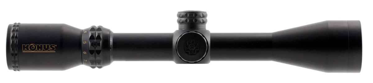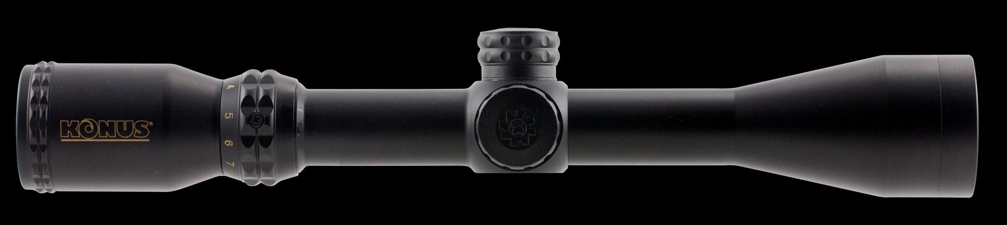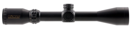 The KonusPro 550 takes the guess work out of hold over angles for even the most difficult of shots. The exclusive ballistic reticle, coinciding with the most popular center fire loads today, provides you with a system of reference lines for exact aiming points out to 550 yards. Lateral hash marks allow for precise leads of moving targets as well as compensating for strong crosswinds. The glass engraved ballistic reticle is unbreakable, and has a dual illuminated red and blue center dot for shooting into dark targets, as well as during the critical dawn and dusk time of day. The multi-coated optics are clear and bright.
