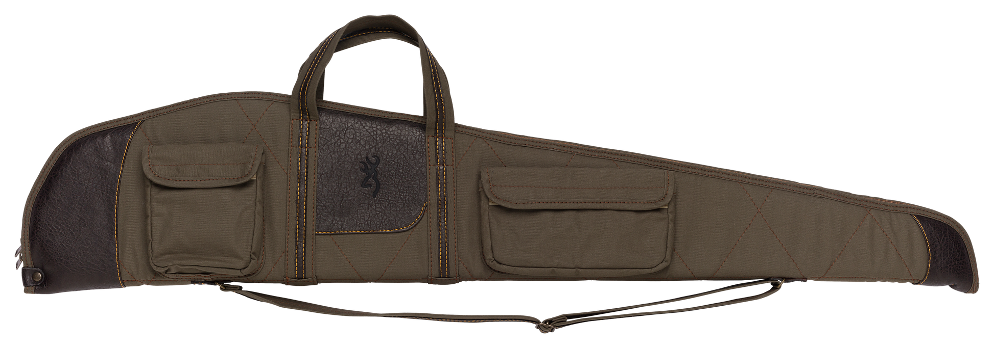 Style and function combine in the laredo rifle case. The outer shell is a handsome olive cotton canvas with contrasting stitching and embossed leather accents. A pair of pockets help you keep track of ammunition and ballistic cards. The padded carry handles and shoulder strap make transporting your rifle easy. From the safe to your vehicle to the firing line, the laredo ensures your rifle and optics are padded against bumps and scratches.