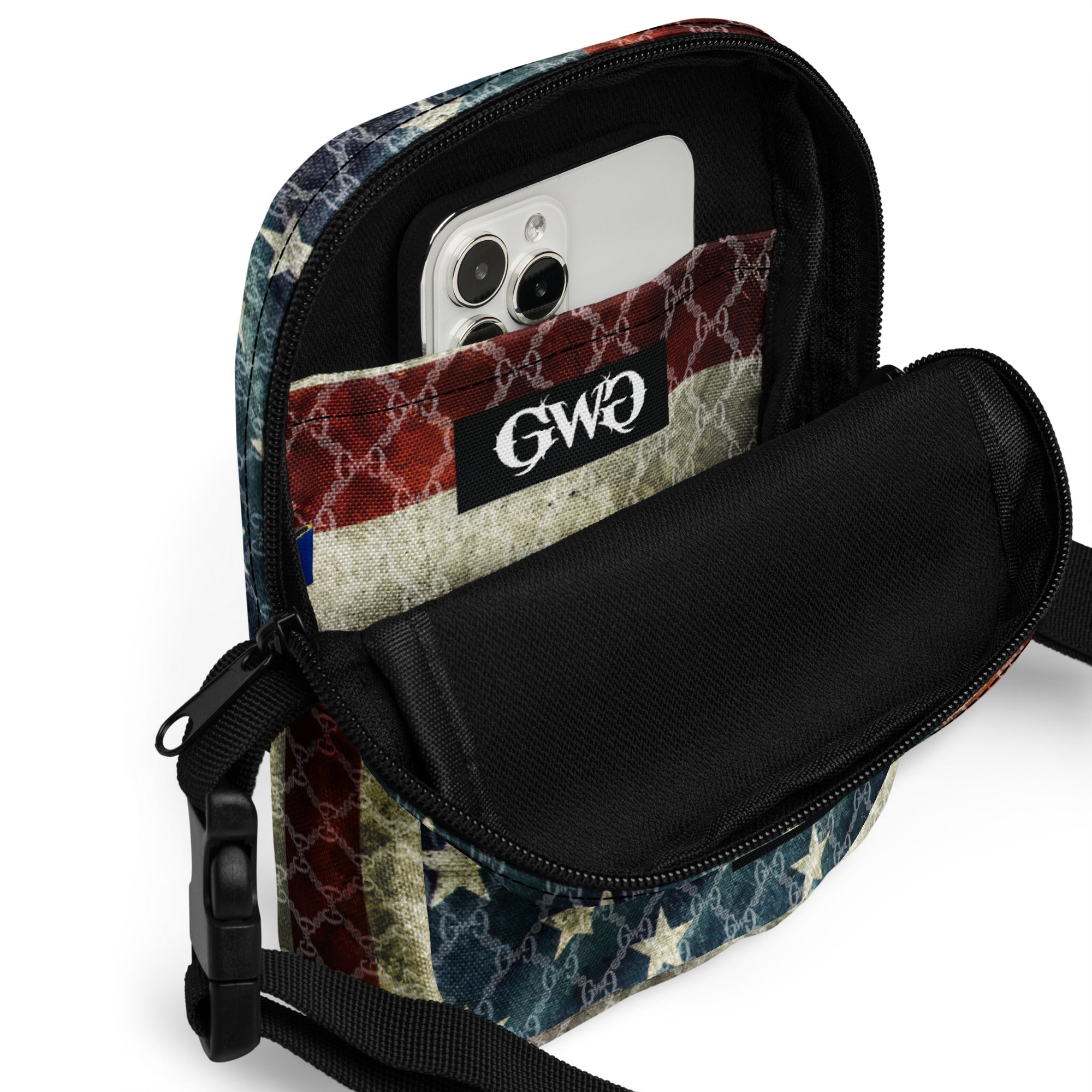 Step out in style and show off your patriotism with our Liberty Crossbody bag! Don't miss out on this versatile and stylish bag, perfect for any adventure you embark on. This bag is sturdy, stylish, and ready to go wherever you do. With adjustable straps and two spacious pockets, it’s the ultimate accessory for hiking, festivals, and everyday use.
