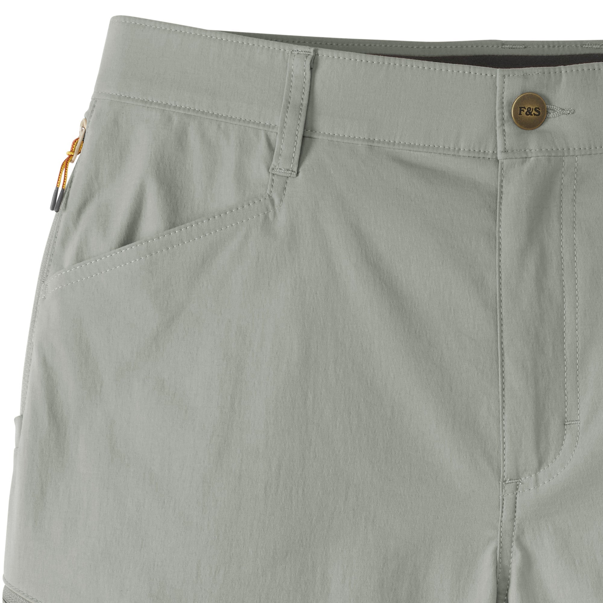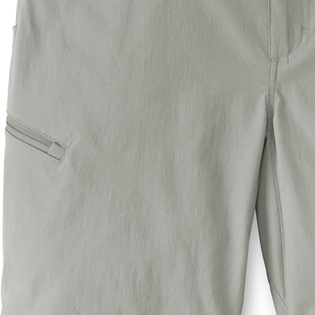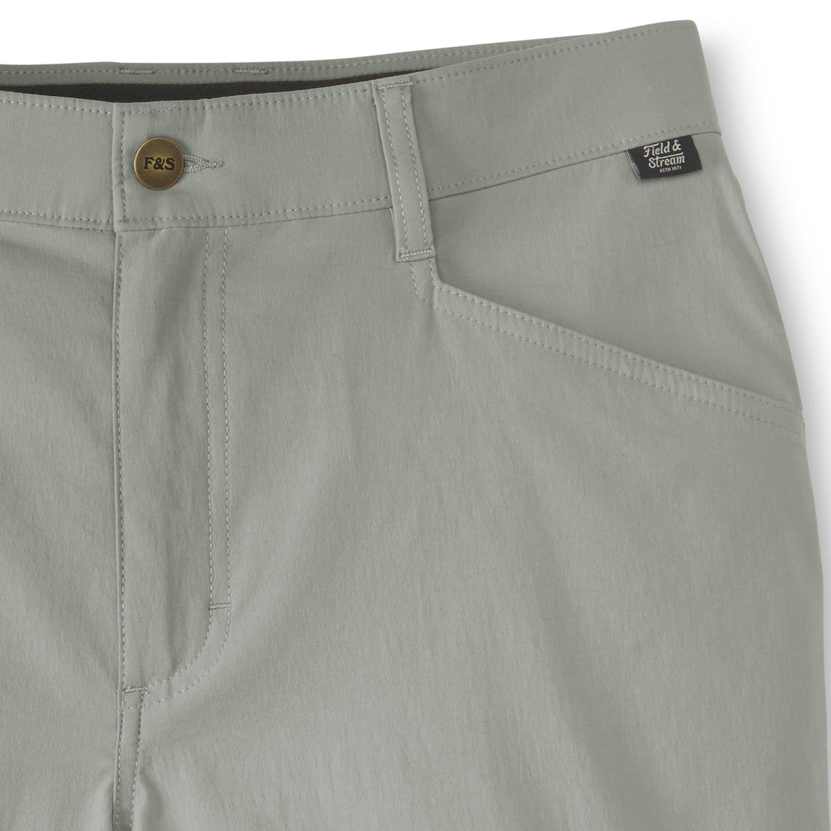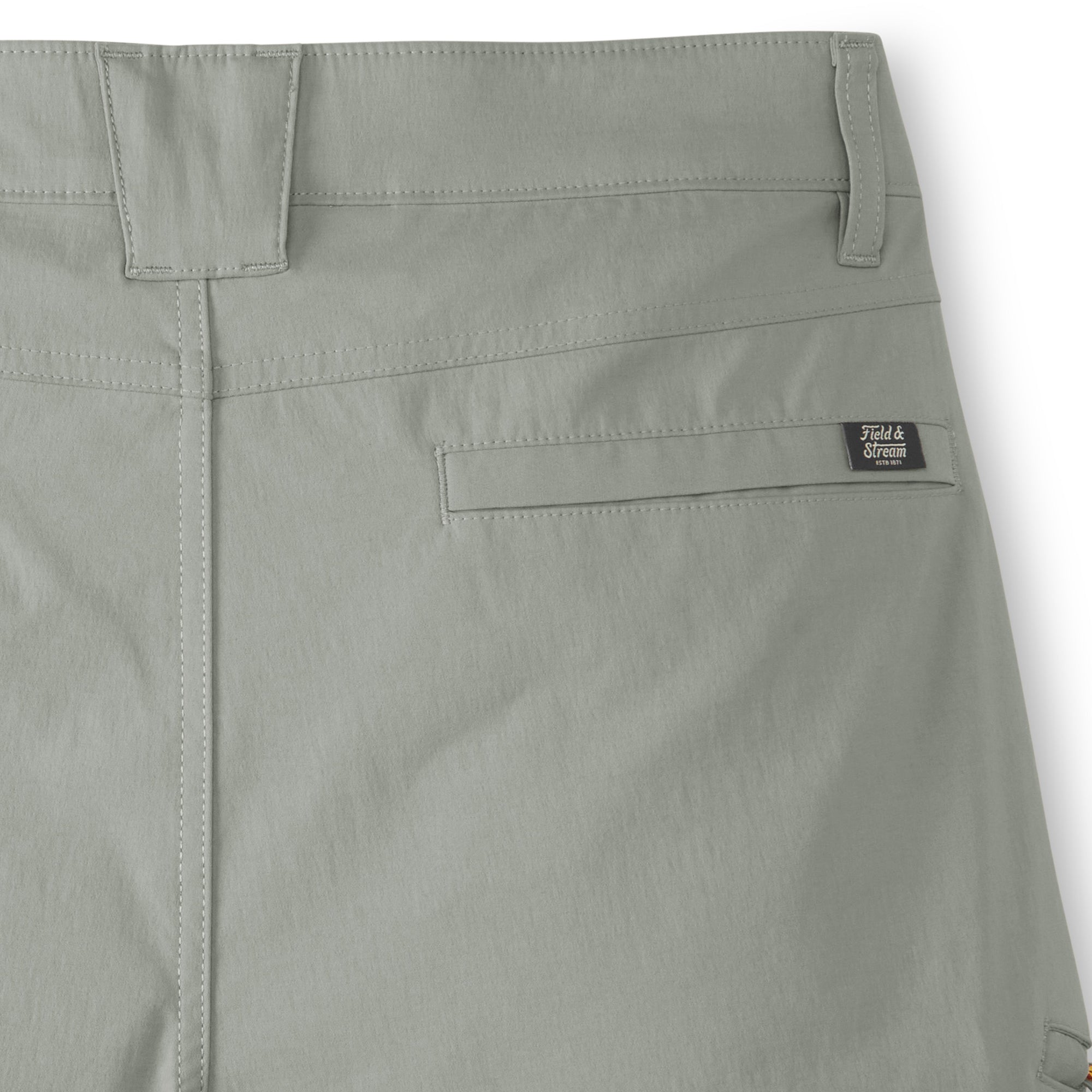Our flat front Performance Fishing Shorts are ready to tackle hard tasks in any body of water, they have an ideal fit and give you freedom to move. Made exclusively for Field & Stream in stretch woven 95% nylon, 5% spandex – nylon for extra durability and reduced shrinkage, Spandex for added stretch and recovery. 5.3 oz. C0 finish to repel water and water-based stains. Lots of features: double-needle stitches, two top front pockets, zippered thigh pocket on wearer’s right side, hidden zipper pocket behind right hip pocket for cell phone - 7 inches deep, rear envelope pockets to secure goods and ease of entry, two grommets in pockets for water or sand to leak through, reinforced pocket bottoms – sewn over for longer durability. Elastic waistband and gusset at crotch for extra moveability and stretch. Field & Stream branded. 9-inch inseam.