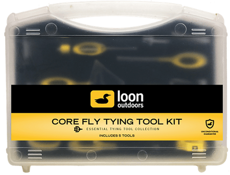 Packaged in a heavy-duty travel case and featuring the Ergo All Purpose Scissors, Ergo All Purpose Bobbin, Ergo Bodkin, Ergo Whip Finisher, and Ergo Hackle Plier this is an excellent choice as a gift for the first-time tyer, or the long-time tyer who wants to trick out his or her bench with something new.