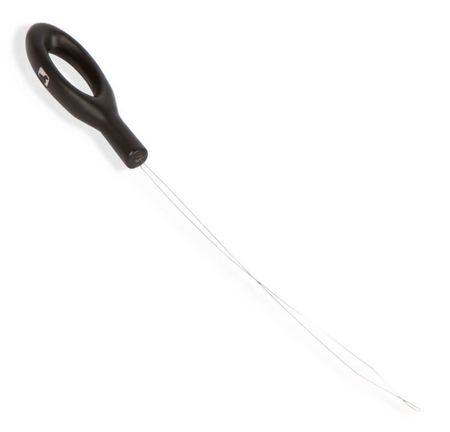 An extra-long bobbin threader that is compatible with even the largest bobbins. The powder coated body is bright Loon yellow, making it easy to find on a bench.
