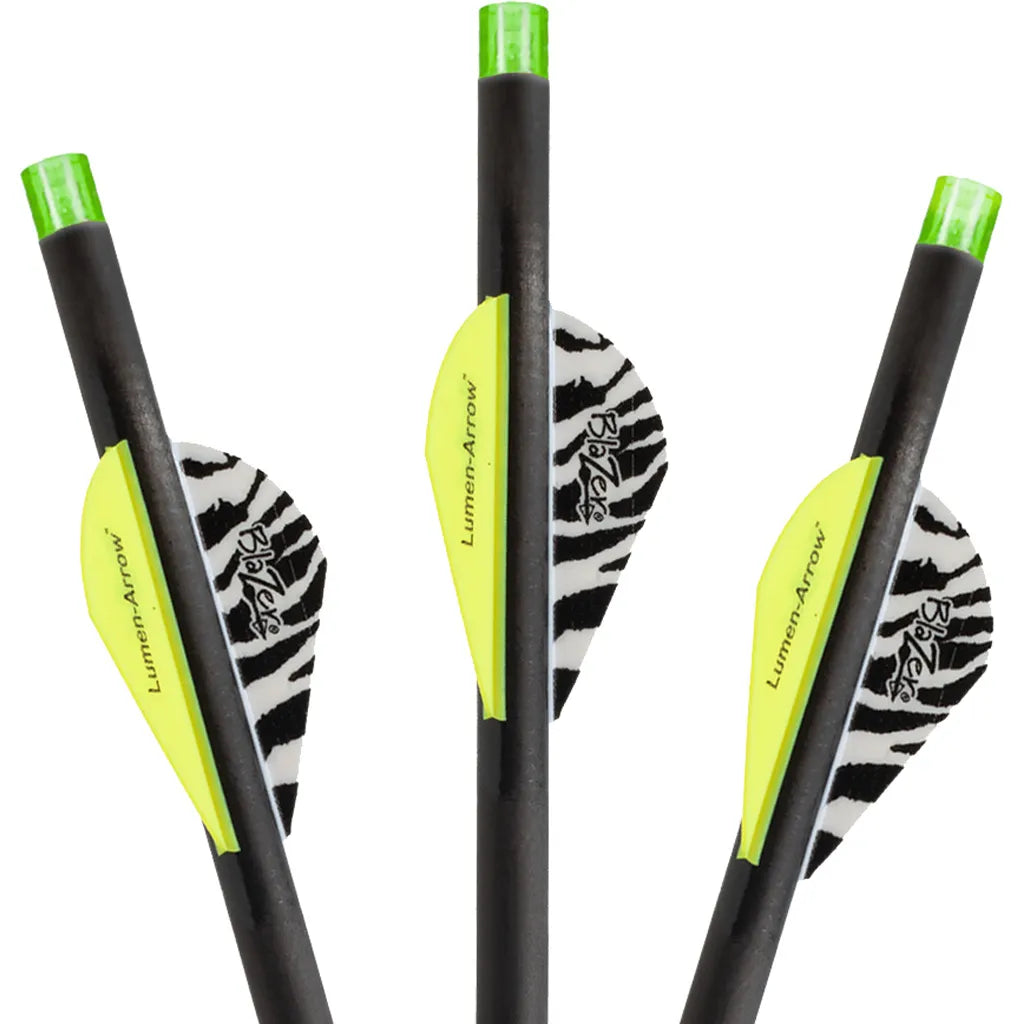Carbon crossbow bolts fletched with 2' Bohning Blazer Vanes and equipped with green Lumenok lighted nocks. Available in 20' (338 gr.). Weights do not include points.