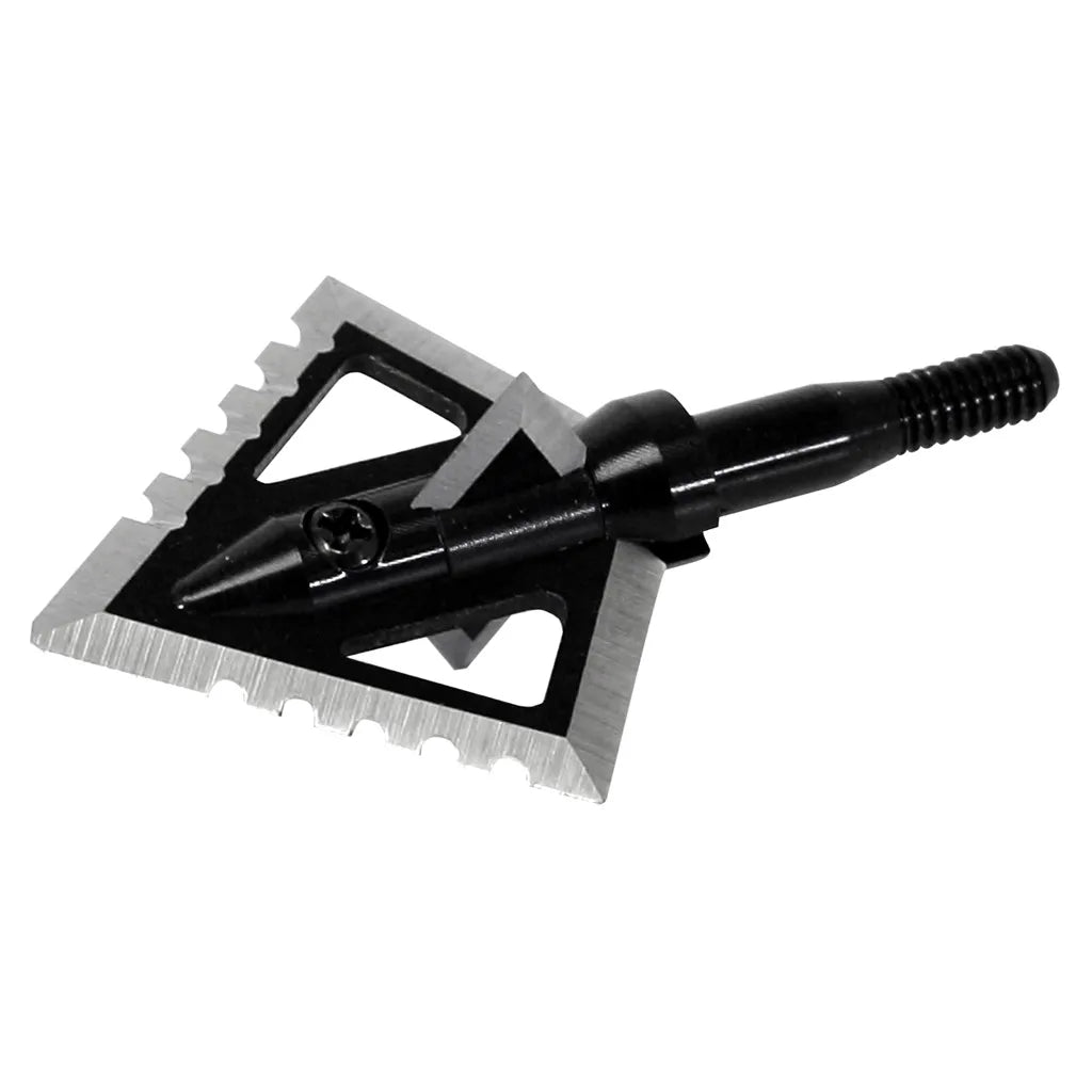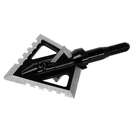 Four blade, fixed blade cut on contact broadhead that features a 1 ¨' cutting diameter on the chiseled serrated edge main blade and a 7/8' cutting diameter on the bleeder blade. Main blade features a thickness of .059 thousands of an inch and the bleeder blade features a .040 thousands of an inch thickness. Made of knife grade stainless steel with a patented diamond tip.