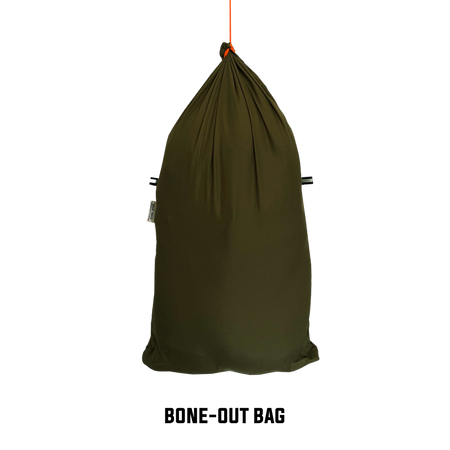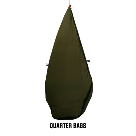 Introducing the first-ever anatomically designed, zippered quarter bag. A game bag that makes loading a bone-in, bull elk quarter a breeze. Designed with Airwave Ripstop material so it can breathe while being durable. Treated with DWR to fight moisture and blood, simultaneously.