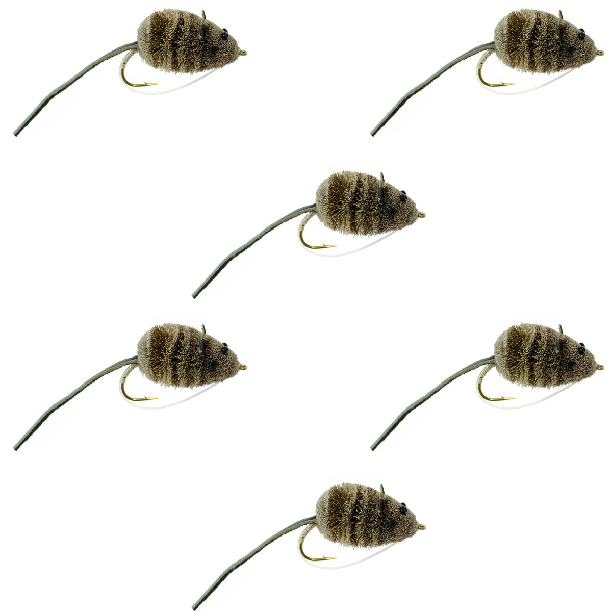 Mighty Mouse Deer Hair Bug 6 Flies Hook Size 4 - Bass Fly Fishing Bug Wide Gape Bass Hooks With Weed Guard