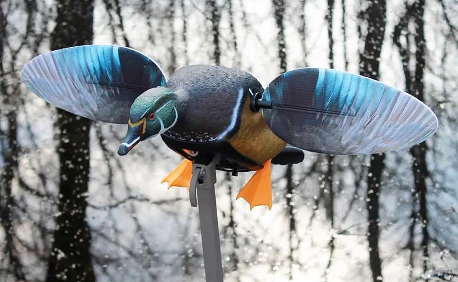 The MOJO Elite Series Woody Duck Decoy is engineered with a solid internal housing that holds all working components, rigidly attached to the support pole, with a separate flexible decoy body that fits over the housing. This design improves durability, realism, and ease of use. The ultra-realistic paint scheme shows fine detail and holds color, while magnetically attached wings run quieter and smoother with efficient performance and longer battery life. Each decoy includes flexible feet attached to the decoy skin for easy storage and portability.
