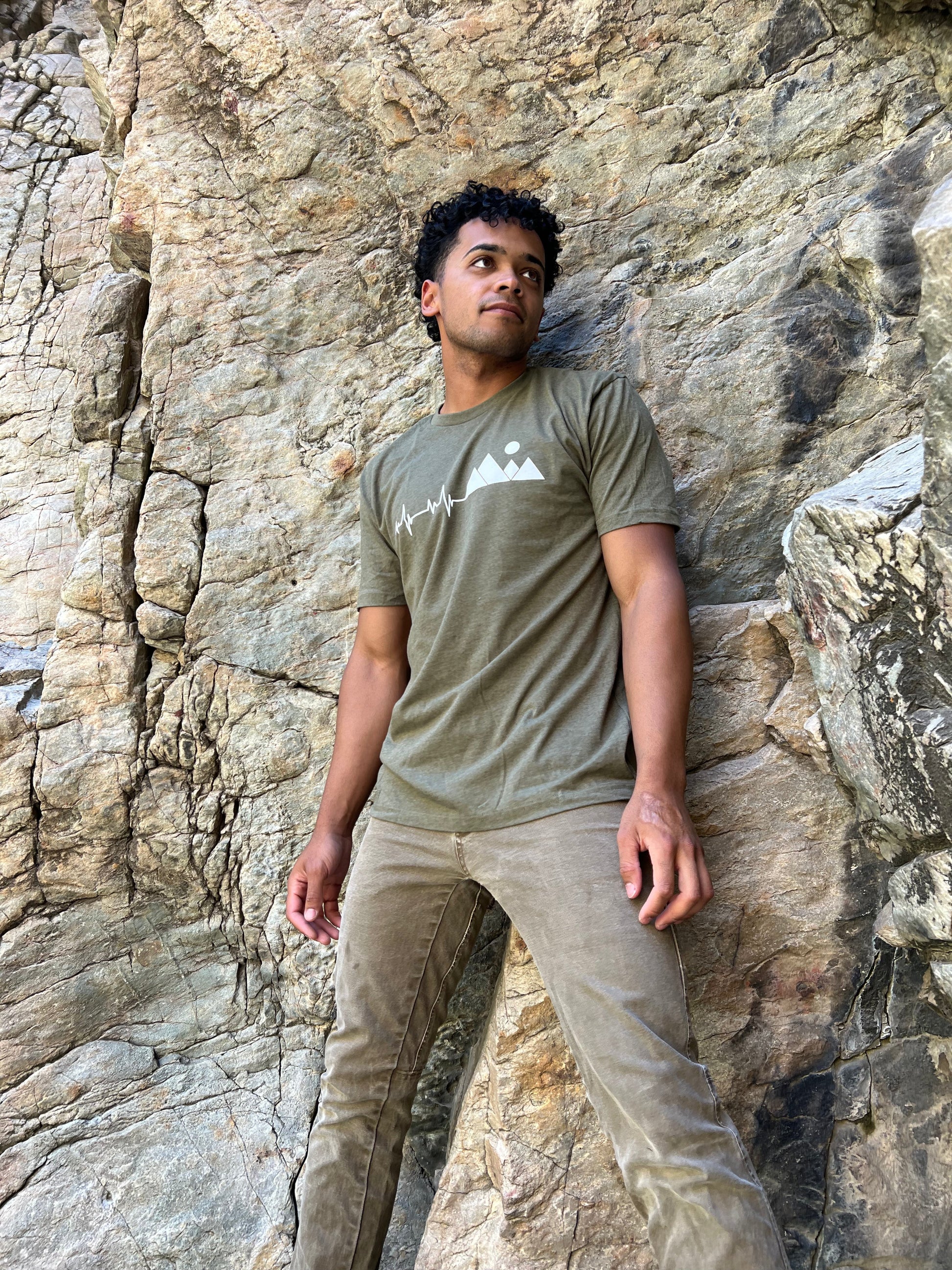 Embrace the call of the mountains with the Mountain Pulse Graphic Tee – where vintage vibes meet ultimate comfort.