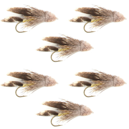 Muddler Minnow Fly Fishing Flies - Classic Bass and Trout Streamers - Set of 6 Flies Hook Size 10
