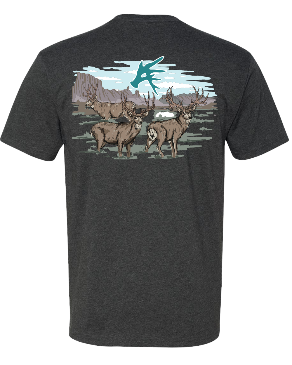 This Mule Deer Bachelor Group Tee is the ultimate choice for both style and comfort. Made with a cotton poly blend that is pre-shrunk, it guarantees all-day comfort while featuring stunning art of Giant Mule deer bucks. Upgrade your wardrobe and showcase your love for wildlife with this must-have tee.