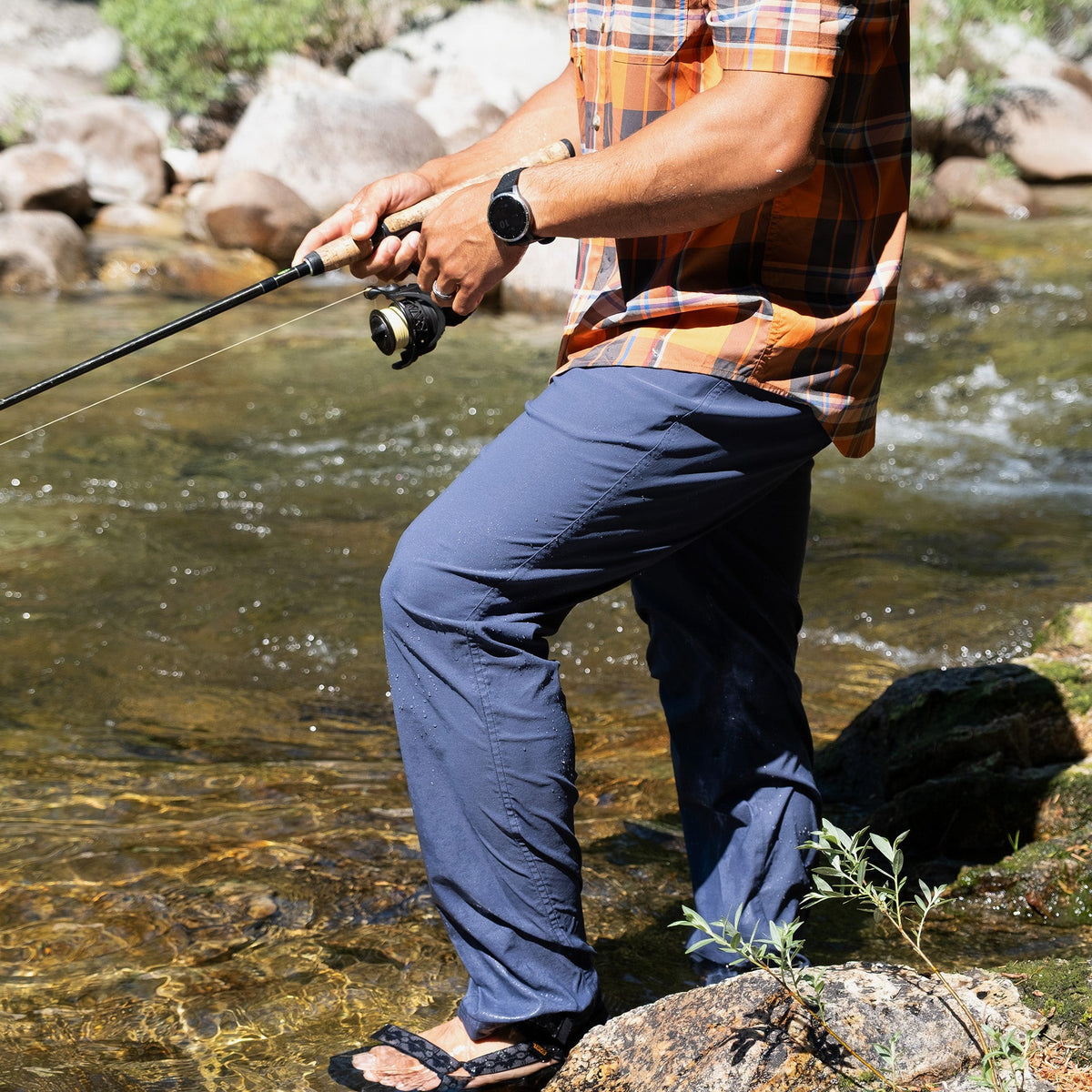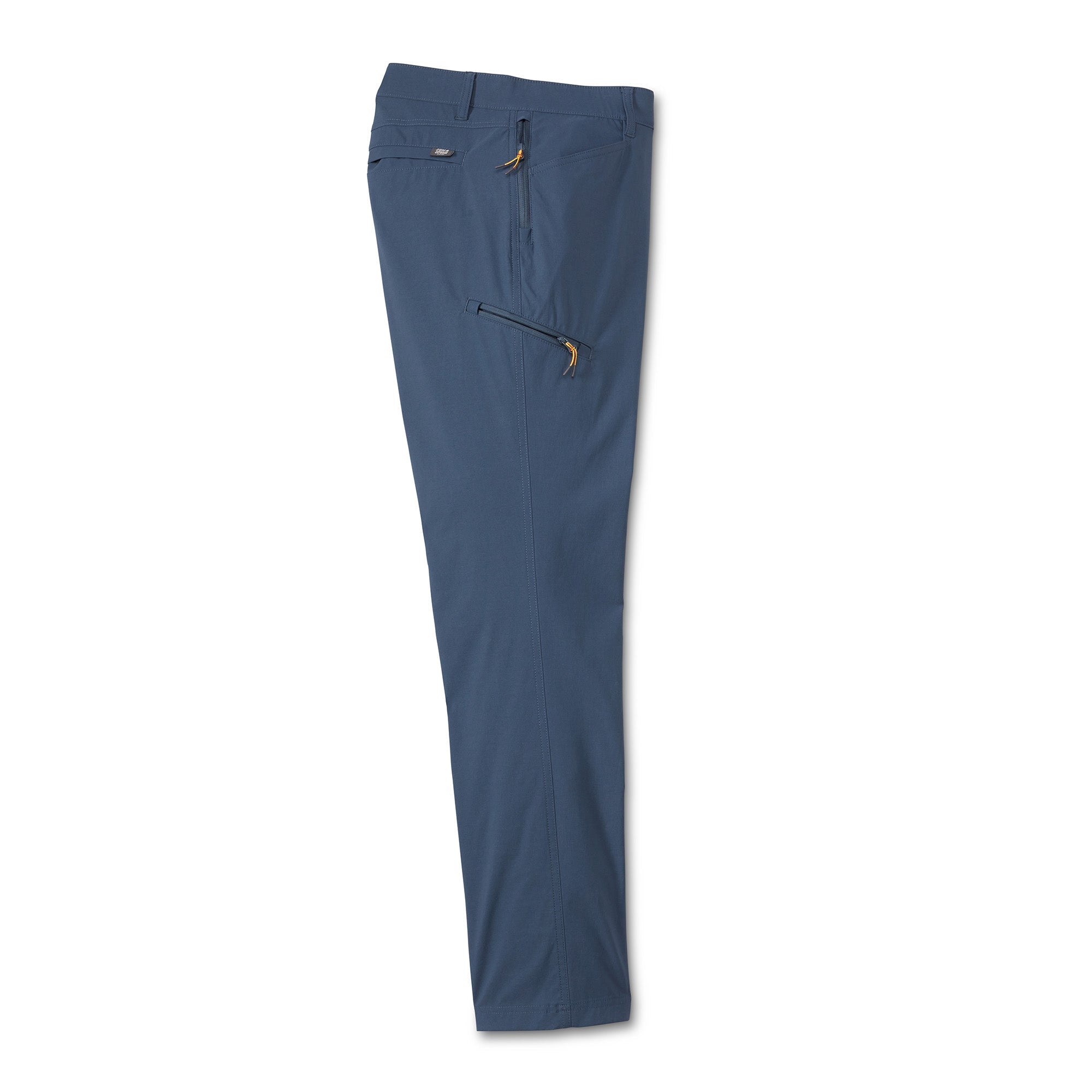 These hard-working performance fishing pants are perfect for the everyday angler but work just as well off the water. Made of nylon for extra durability and reduced shrinkage, Spandex for added stretch and recovery). Lots of features: double-needle stitches, two top front pockets, zippered thigh pocket on wearer’s right side, hidden zipper pocket behind right hip pocket for cell phone (7 inches deep), rear envelope pockets to secure goods and make entry ease, two grommets in pockets for water or sand to leak through, reinforced pocket bottoms – sewn over for longer durability. The elastic waistband and gusset at crotch help these pants move with you.