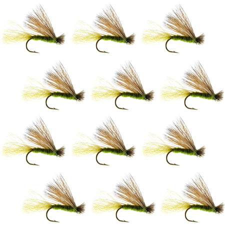 Olive X Caddis Emerging Caddis Adult Trout Dry Fly - 1 Dozen Flies Hook Size 18