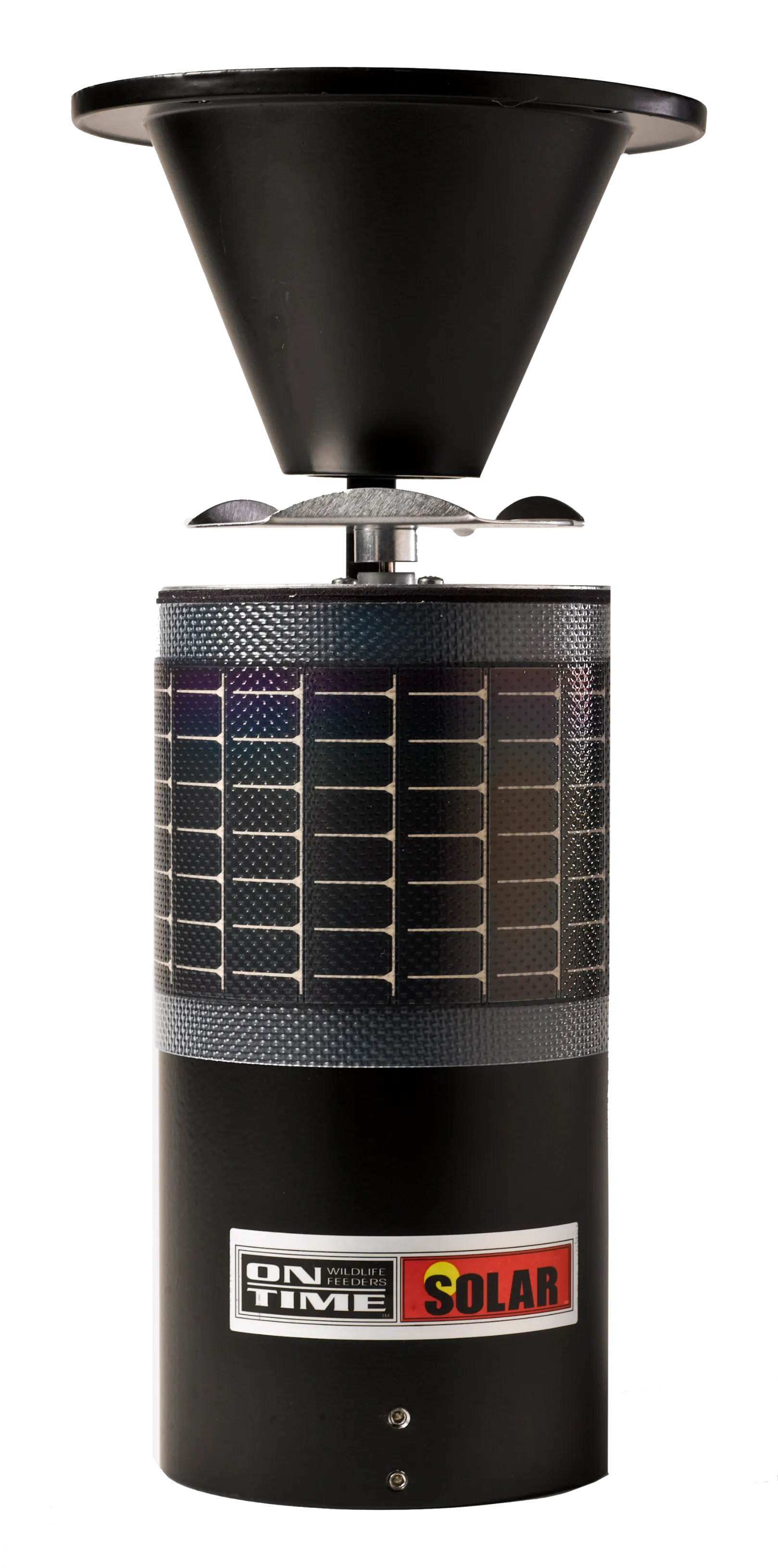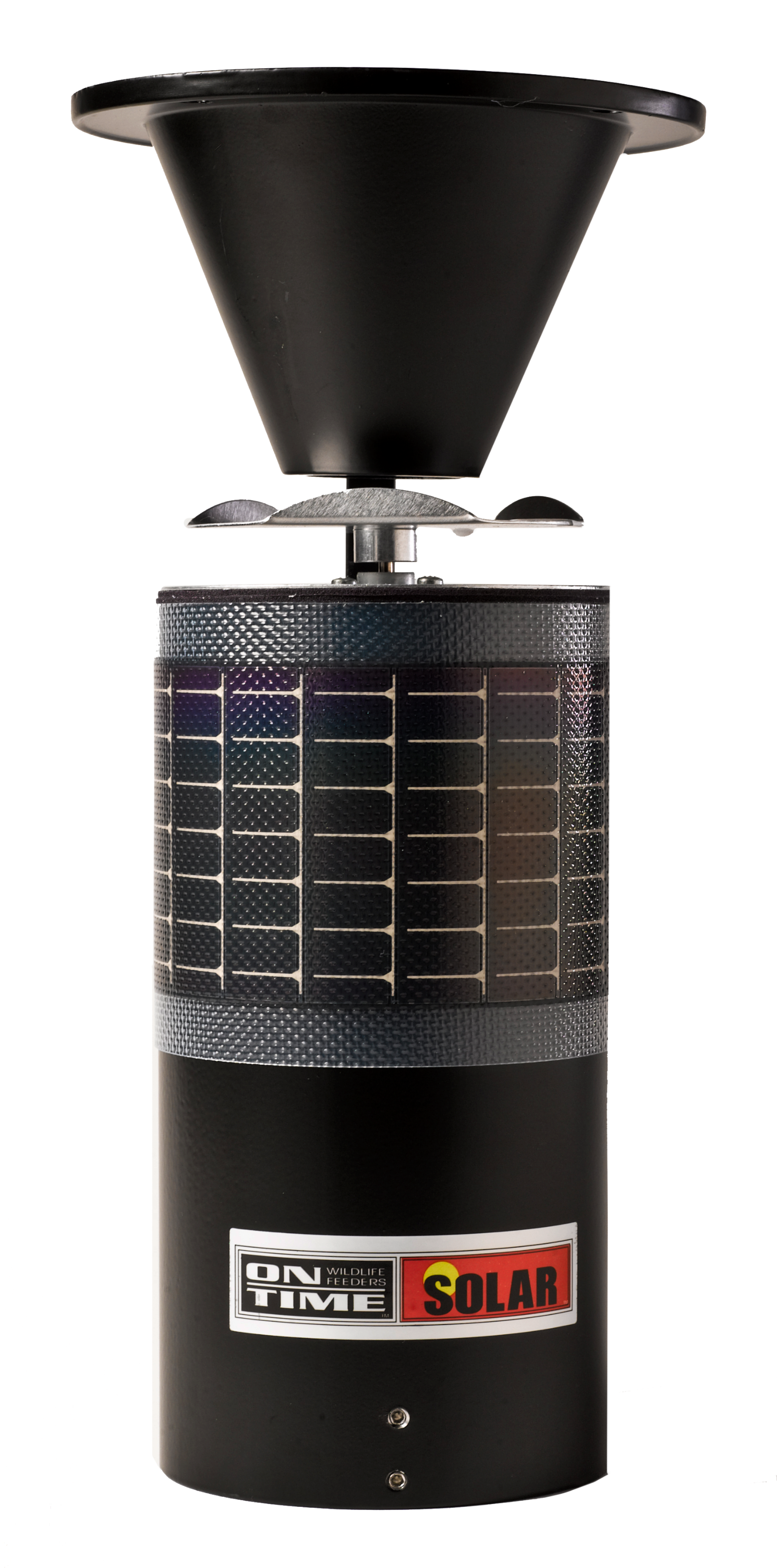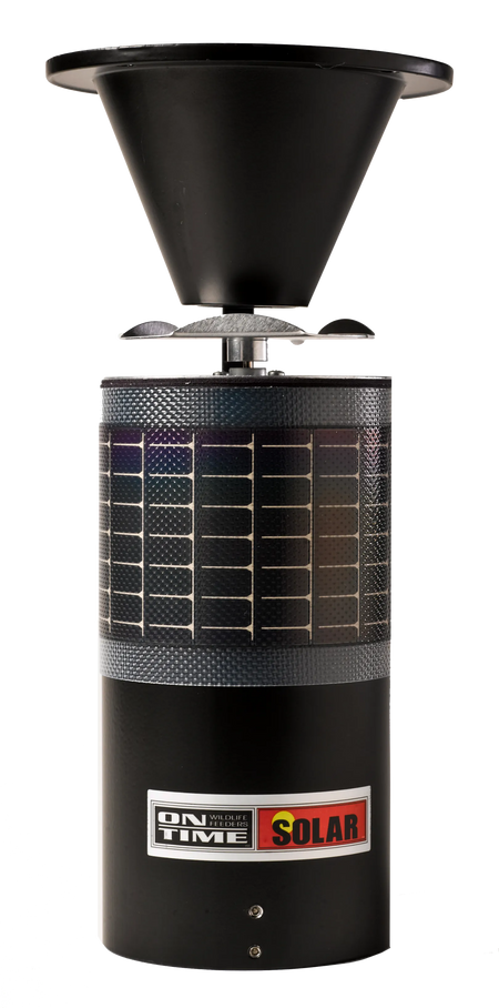 The solar elite lifetime feeder offers an integrated, wraparound, high impact solar panel to charge the included gel cell battery.It has an all aluminum housing construction and a waterproof design with the lcd in the base.The programmable lcd lets you customize feedings: 1 to 6 times per day with durations of 1 to 30 seconds.Its universal mounting allows the solar elite feeder to fit most hoppers.