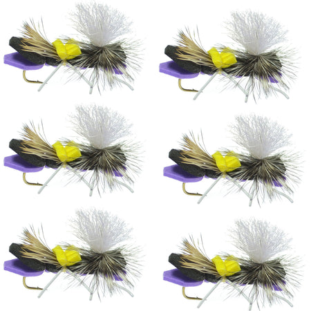 Parachute Chernobyl Ant Purple Foam Body Grasshopper Fly - 6 Flies Hook Size 10
