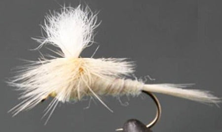 • Light tan body: The light tan body of the Light Cahill is made with fur or dubbing and helps to imitate the body of the natural mayfly.