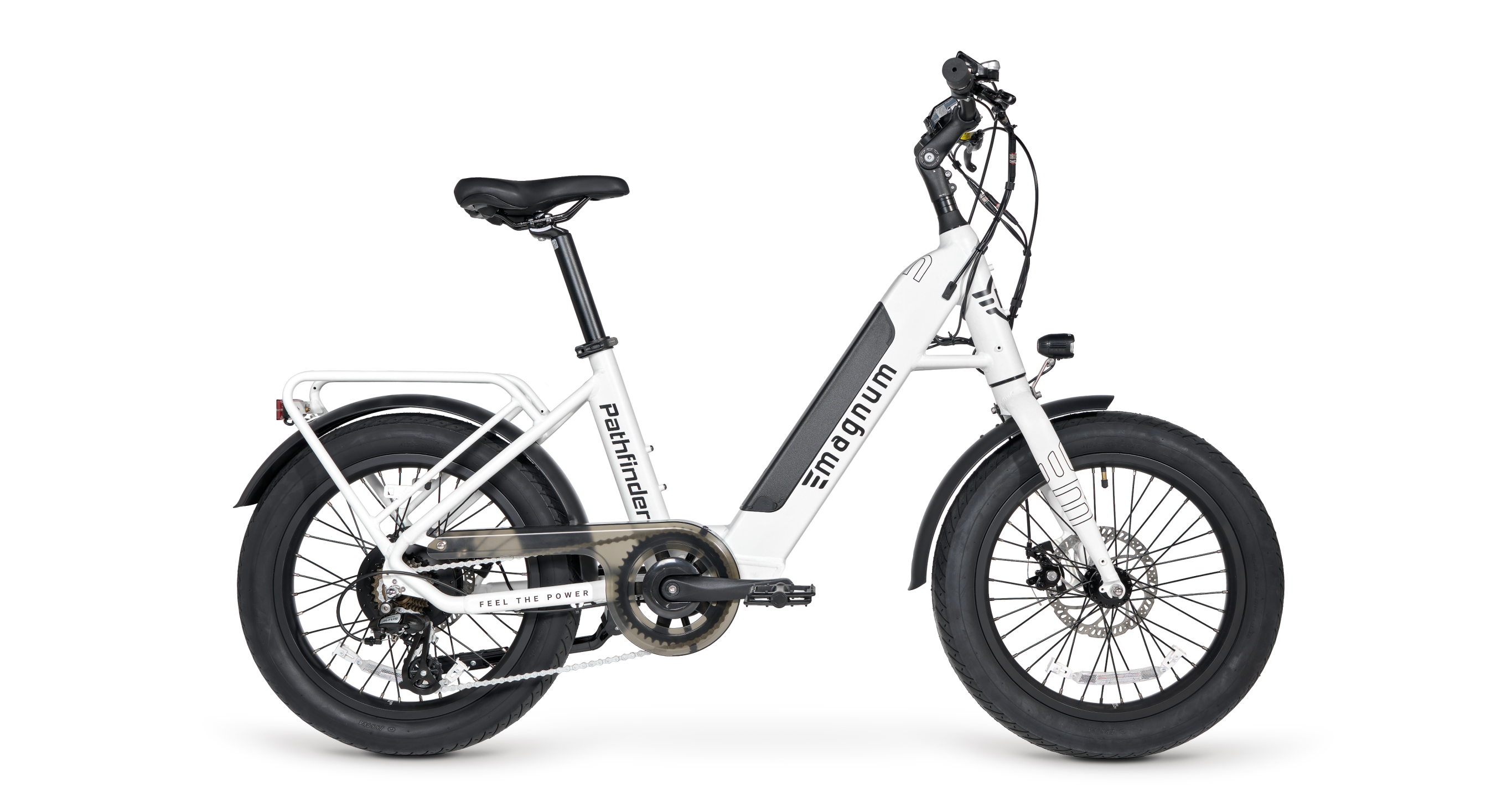 Work hard and play harder! The Magnum Pathfinder 350 is an e-bike that suits your active lifestyle. Whether it's used for recreation, exercise, commuting, or for the pure joy of power-assisted movement, the unisex Magnum Pathfinder 350 with its step-through frame will match your physique and your skills, and exceed your expectations.