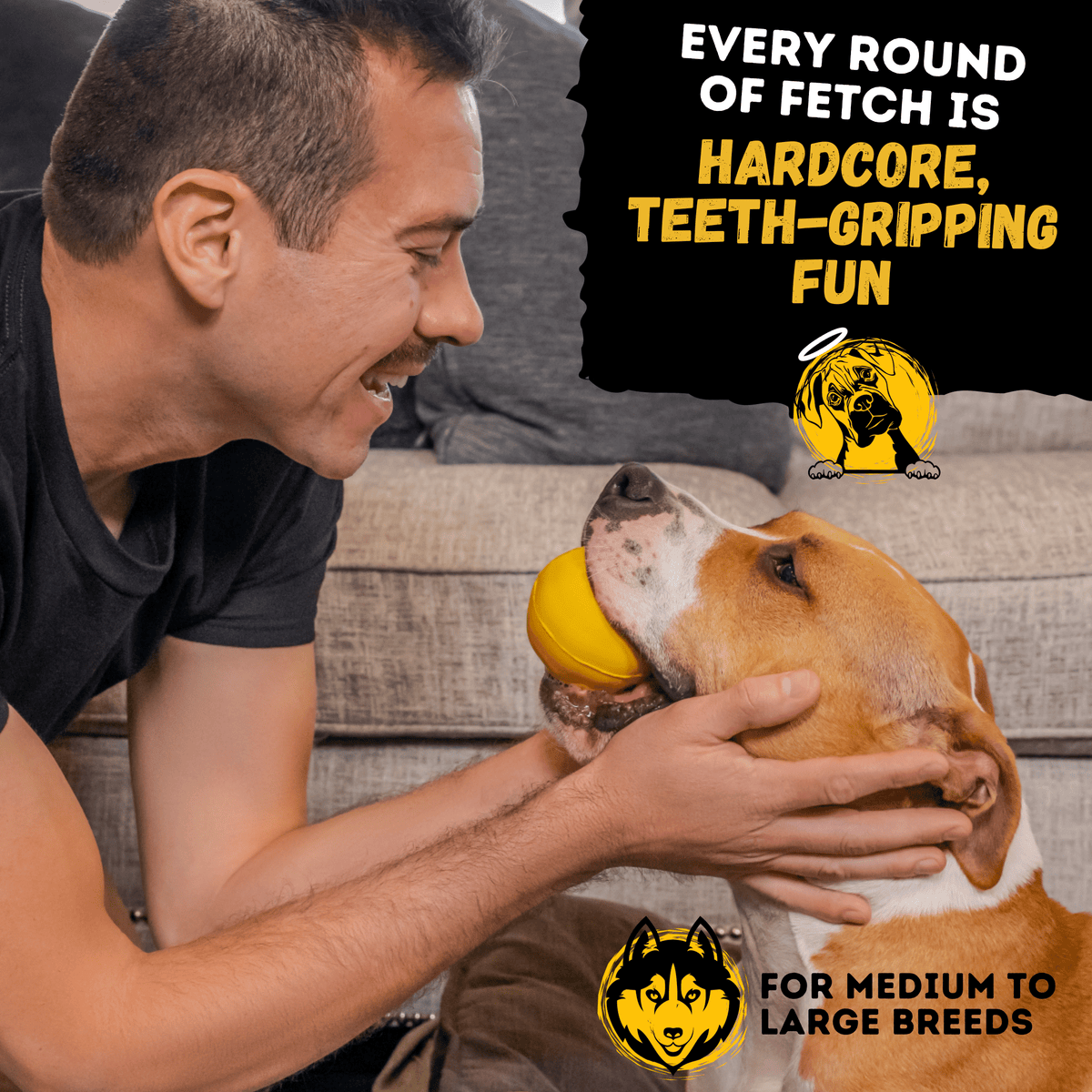 • Loved by Big Dogs - YELLOW (HIGHLY VISIBLE COLOR FOR DOGS) - The unique, engaging natural rubber & bright yellow color make WOOFBITE toys irresistible to dogs, ensuring they are obsessed from the moment you unbox it.