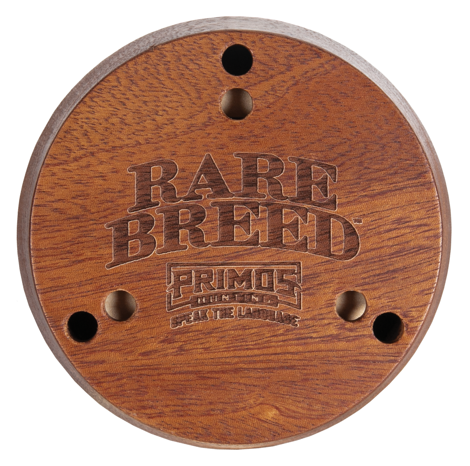 Primos rare breed is offered in both slate or glass surfaces and now as an anodized aluminum surface pot call.Aluminum creates louder and bolder high pitches to help you reach and coax gobbles out of otherwise quiet toms in your area.The anodized surface requires no conditioning, so its ready to call out of the box.Its also the most weather-resistant calling surface.So, if it gets wet or oily from your hand, dirt, rain, or from setting it on wet grass, wipe it with an alcohol wipe, let it dry, and keep calling.The comfortable rounded cup fits great in your hand while working a bird.Outer edges of the call produce higher yelps, cuts, and clucks, while lower and deeper tones can be made toward the middle.