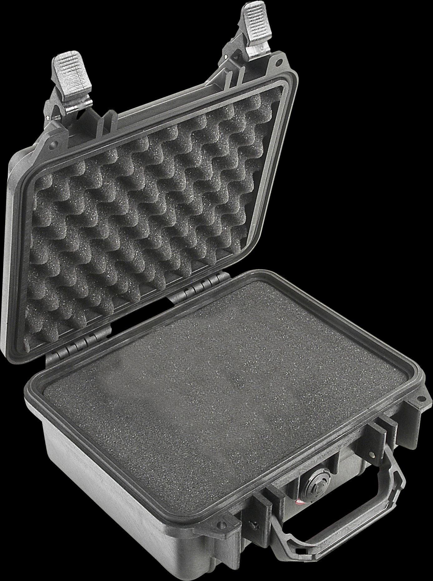 Pelican's protector small case features easy open double throw latches, open cell core with solid wall design strong and is o-ring sealed. This model also features an automatic pressure equalization valve, stainless steel hardware and pick n pluck with convoluted lid foam. Its interior dimensions are 9.30" x 7.10" x 4.10". Made in the usa.