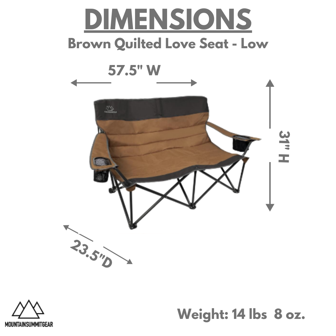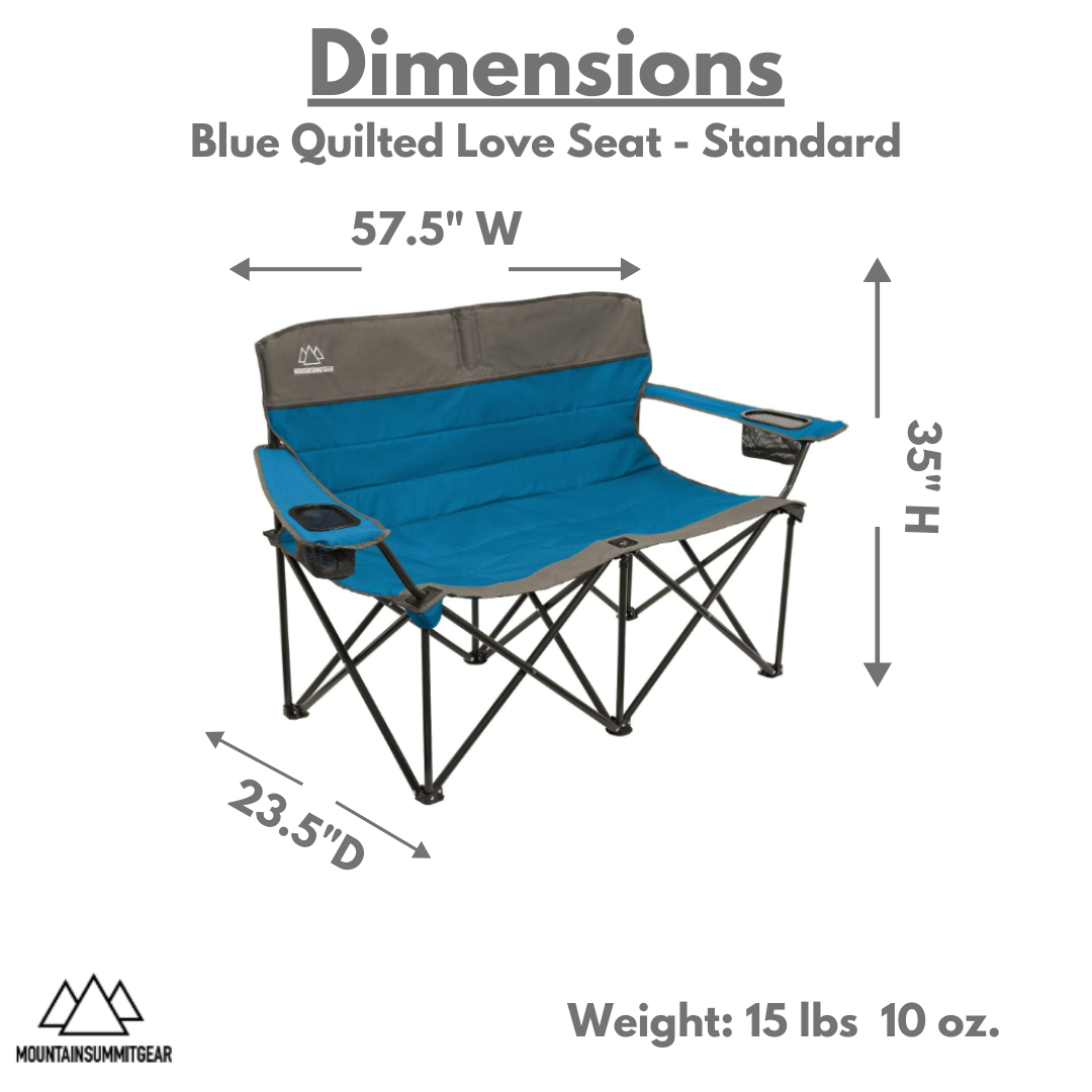 - This Quilted and Padded Loveseat camping chair features a 19 in. seat height and is a terrific foldable chair for your camping or beach adventures with a weight capacity of 500 lbs. (or 300 lbs per seat)