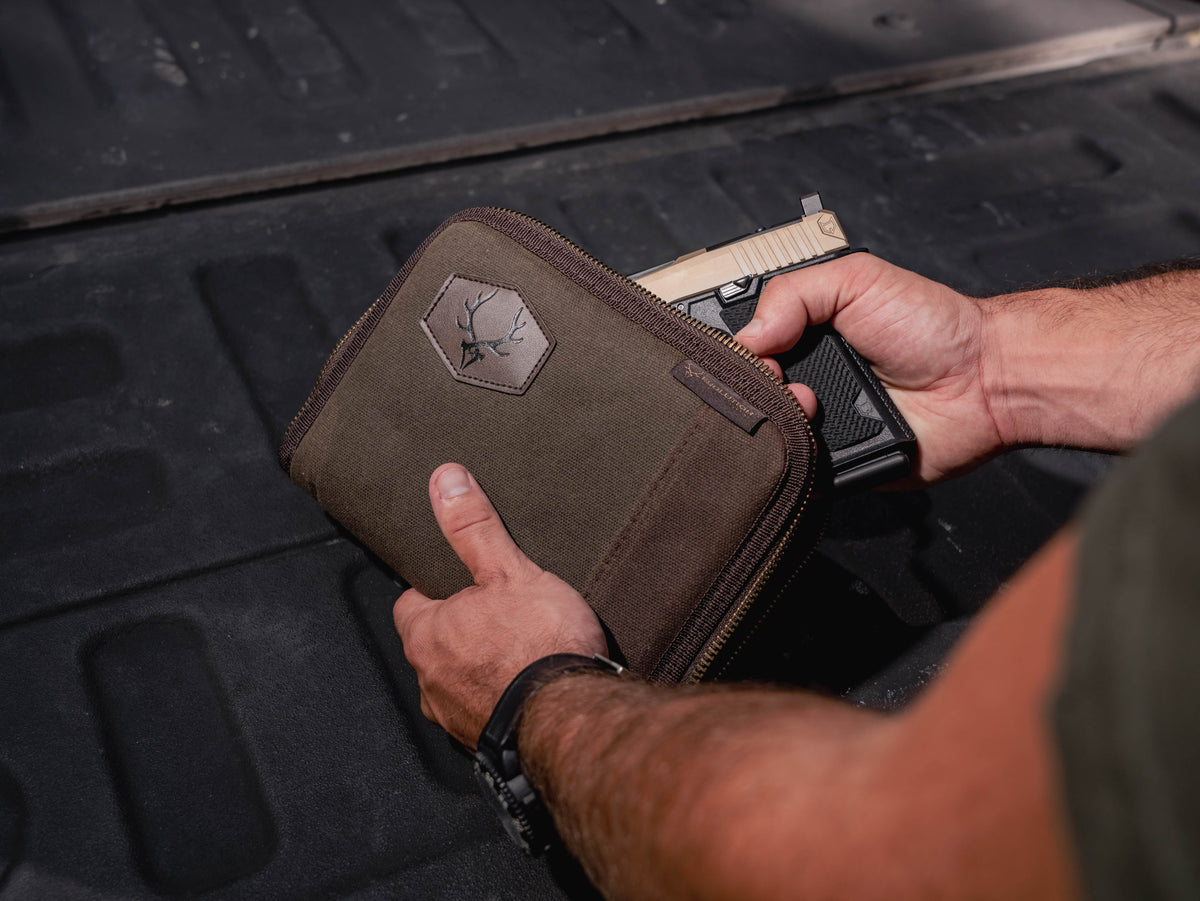 Elevate your gear with the Rawhide Waxed Canvas Pistol Case and enjoy the perfect fusion of expert craftsmanship, timeless style, and unbeatable protection. Get ready to make a statement with a gun case that pays homage to the rich heritage of hunting while keeping your firearms safe and stylish.