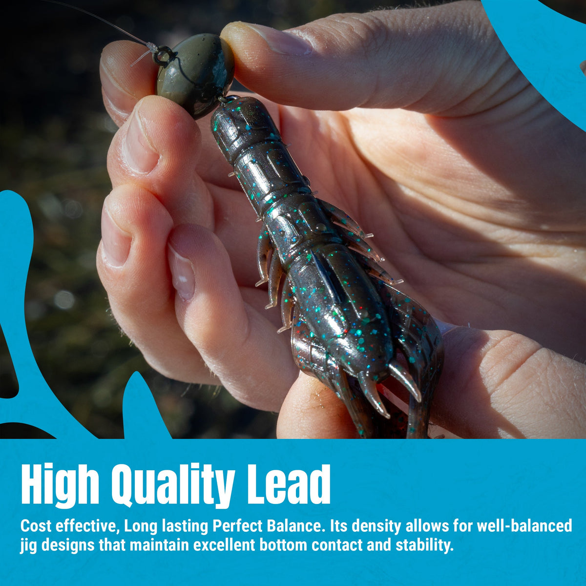 - Football-Style Head: The football-shaped head resists snagging and keeps the jig upright, ideal for fishing rocky bottoms and deep structures.