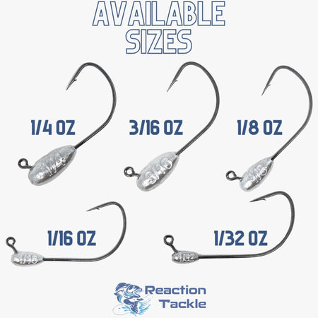 • 1/32, 1/16, 1/8, 3/16 and 1/4 oz (all have 4/0 Hook Size)