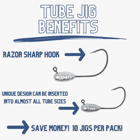 Upgrade your fishing game with our high-quality Tube Jigs designed to enhance your technique and reel in more fish. Made from top-of-the-line lead, our jigs ensure durability and longevity. Each jig is stamped with its weight, providing accurate information and eliminating guesswork. Experience superior sensitivity for unmatched detection of nibbles and strikes. Crafted with the highest quality materials, our Tube Jigs are strong, durable, and built to last. The super strong hooks make them ideal for targeting lake trout, bass, crappie, and other species, giving you confidence and professional-grade performance. Designed for professional anglers, our diamond-polished Tube Jigs withstand challenging conditions, ensuring durability and reliability. Elevate your fishing game with our exceptional-quality jigs and enjoy a new level of success.