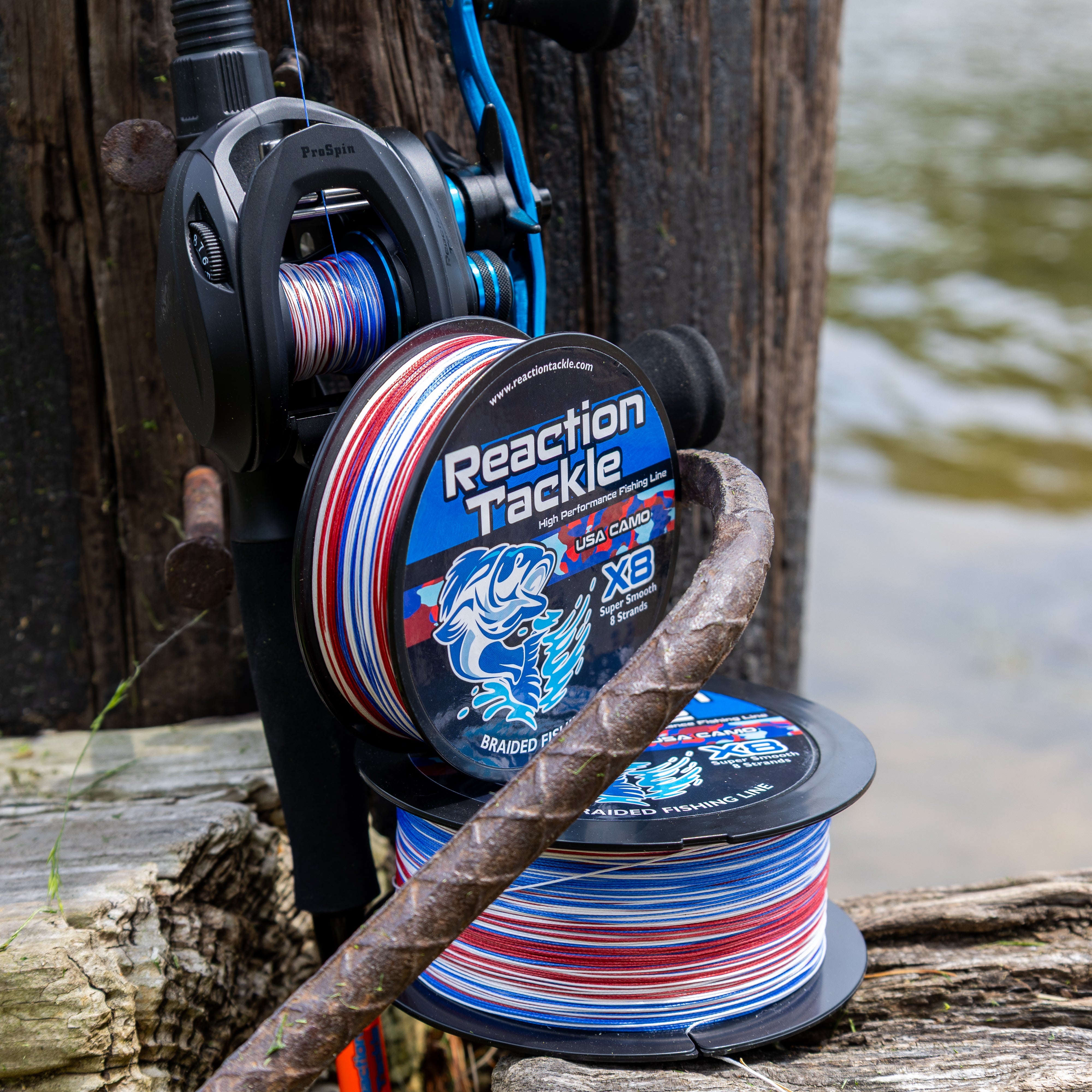 Reaction Tackle X8 Braided Fishing Line - USA Camo 8 Strand - NEW