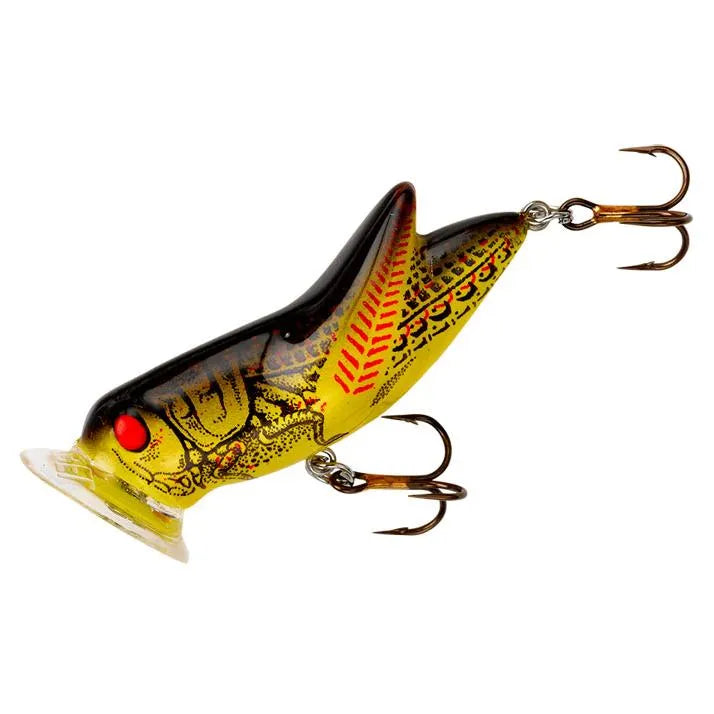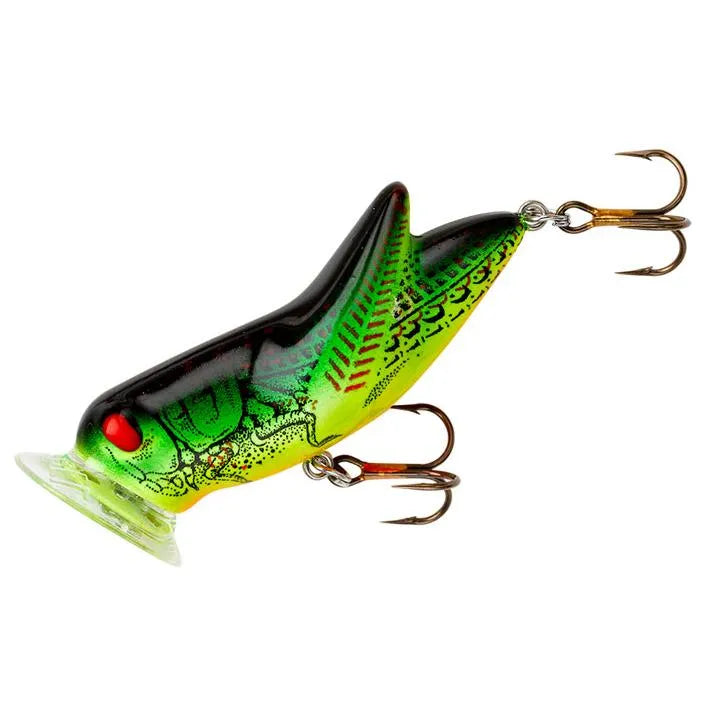 Summertime means the living is easy - unless you're a grasshopper. The Rebel Crickhopper Popper is a realistic grasshopper popper that catches anything that swims. When twitched, the Crickhopper Popper produces a loud splash that attracts fish from long distances. The realistic profile and color pattern does the rest, even in ultra-clear water.