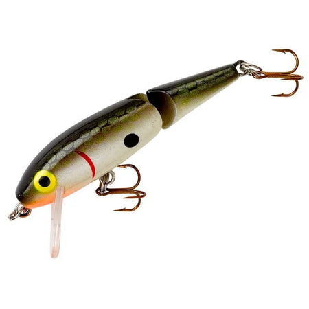 The Rebel Jointed Minnow, commonly referred to as a "broke-back" minnow, produces more action than a solid body lure, which can be key to getting strikes from stubborn or educated bass, walleye and other gamefish. Designed to be fished three ways -slowly reeled on top, retrieved at a steady pace or twitched erratically under the water -the Rebel Jointed Minnow gives fish that extra "something" that produces strikes.