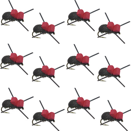 Red Top Black Foam Beetle Terrestrial Trout Dry Fly Fishing Flies - 1 Dozen Flies Size 14