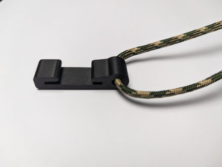 Molle rope hanger. There is a hole for amsteel or paracord. Fits 1" molle. Hanger is 1/2" wide and 3D printed with PETG filament.