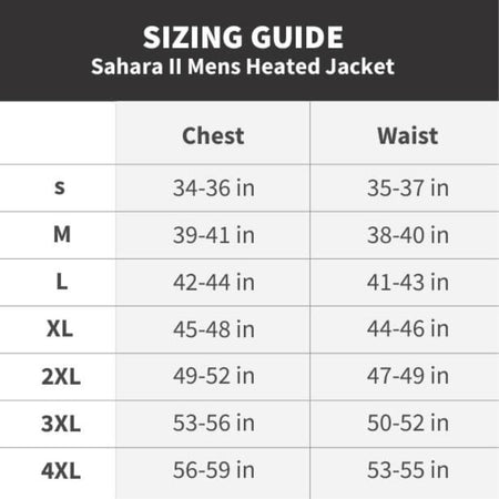 Featuring our industry leading 6500 mAh battery, Sahara II allows you to control your body temperature with three heat settings: Low, Medium, and High. Also, this heated jacket has three heat zones in the most effective locations, two heat zones in the chest and a large zone in the back.