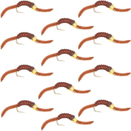San Juan Bead Head Power Worm Brown V-Rib - 1 Dozen Hook Size 14