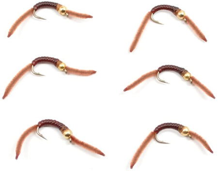 San Juan Bead Head Power Worm Brown V-Rib - 6 Flies Hook Size 12