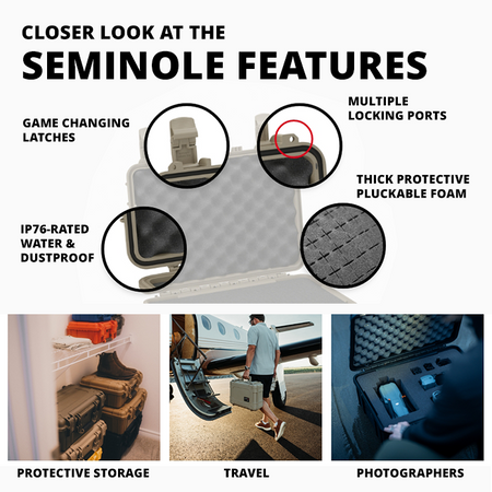 Whether you're heading into the wilderness, traveling with firearms, or storing electronics and collectibles, the Seminole Watertight Protective Case has you covered. This case is built to withstand harsh environments, ensuring your essentials stay safe, dry, dust free and secure.