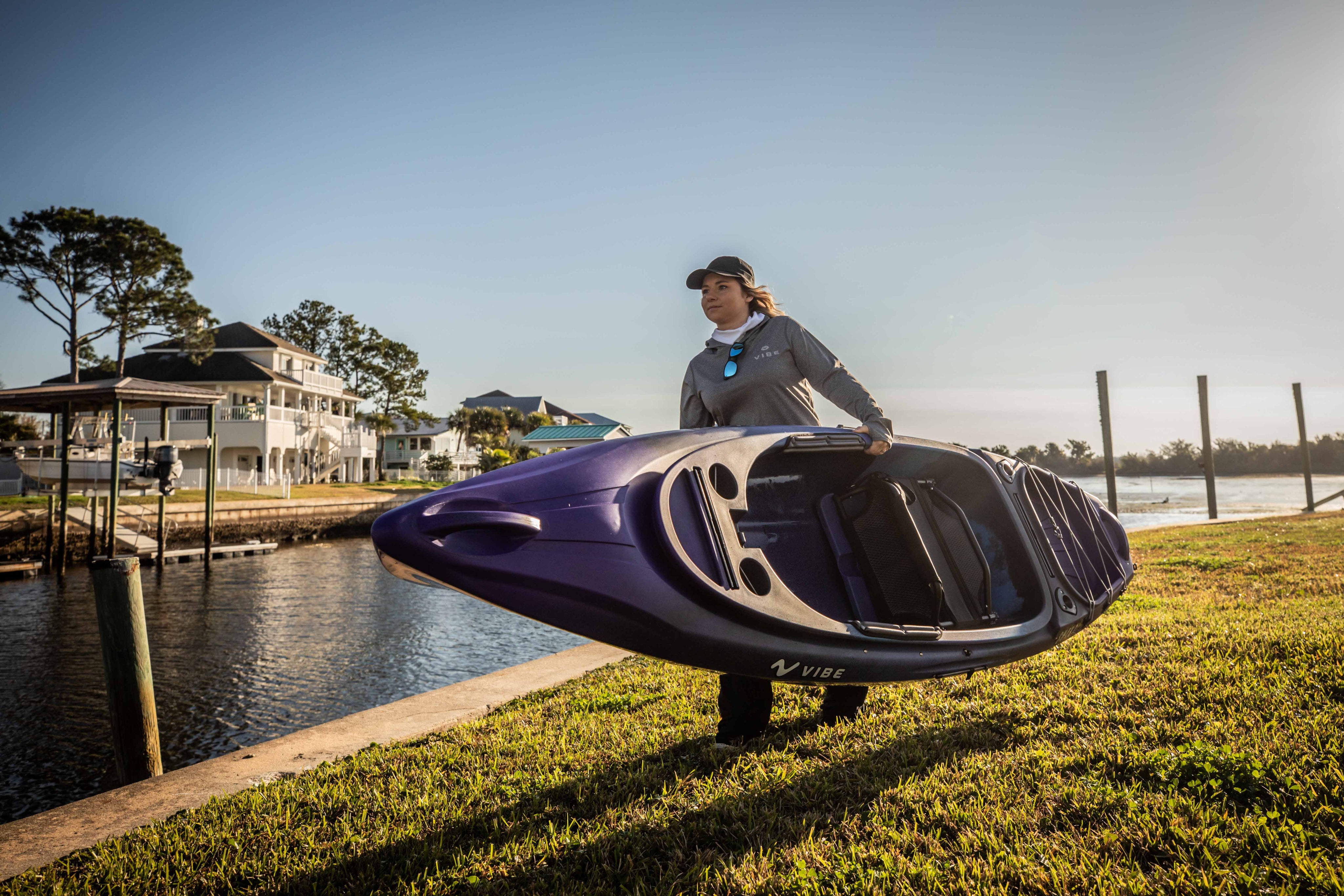 The Vibe Shaka 100 is your all-terrain, go-anywhere, do-anything kayak — lightweight, nimble, and loaded with features that punch way above its 10-foot frame. Whether you’re paddling the lake, sneaking into shallow creeks, or casting from your cockpit, the Shaka brings power, comfort, and freedom in one sleek ride.