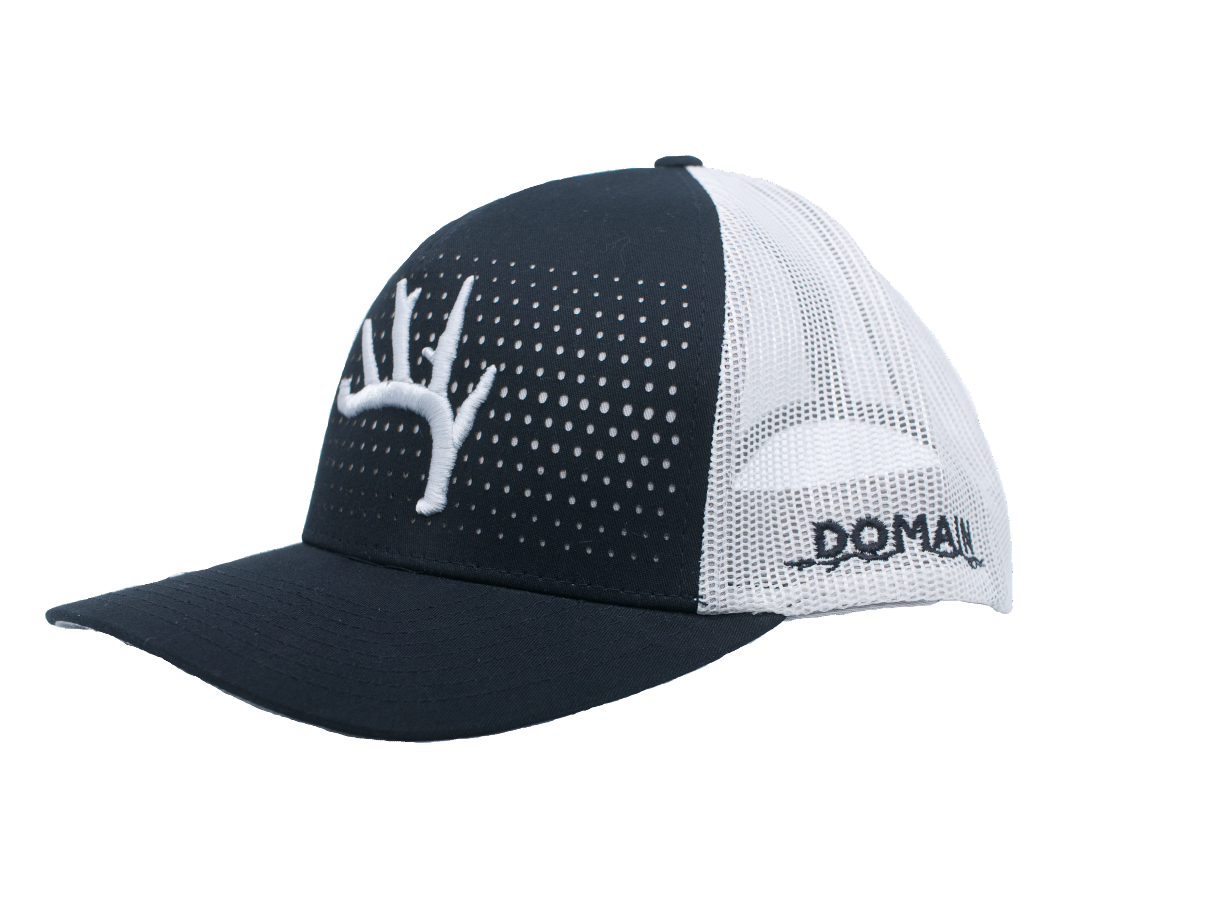 FROM OUR LIMITED EDITION “SHEDDY COLLECTION” THE DOMAIN BLACK & WHITE SHEDDY HAT OFFERS A 3D EMBROIDERED ANTLER AND IS THE PERFECT HAT FOR GOING OUT ON THE TOWN.